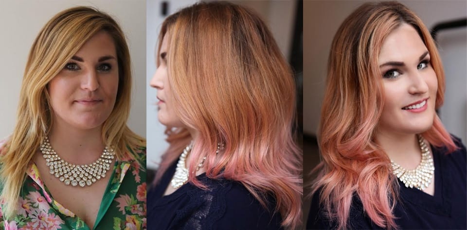 At first I was concerned about the degree of pink with my new corporate job starting in just weeks. The result was stunning. We called it ‘Strawberry Dreamsicle.’ This new trend blends a diffused color finish on your hair like a light blush. It complements the balayage color from root to tip leaving the brightest for the tips just as the blonde balayage.